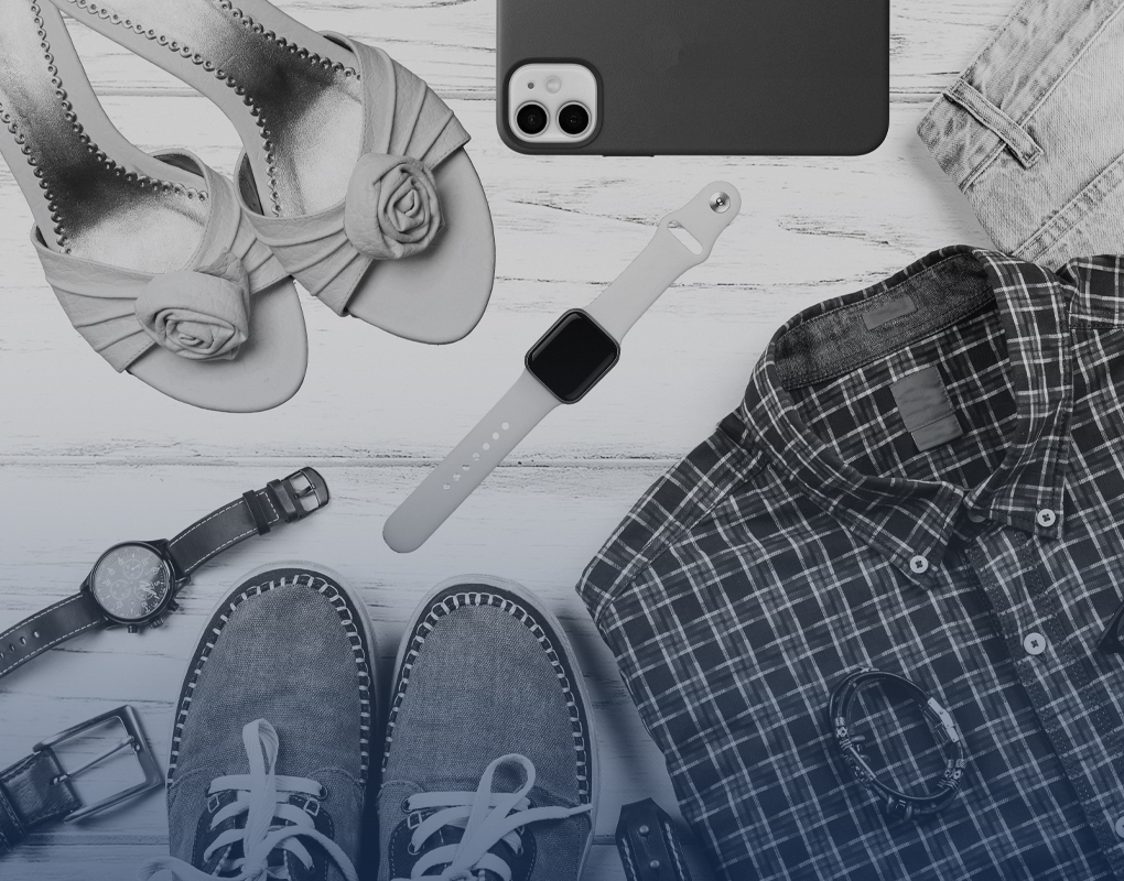 Dames-, heren- en kinderkleding. Sieraden, tassen, schoenen, reistassen, koffers.